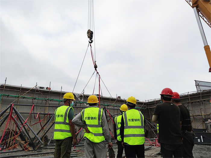 6.为确保.怒江加油站球形网架安装顺利,应有详细的怒江施工组织设计。网架安装必须保证结构的稳定性和不产生的附加变形。
